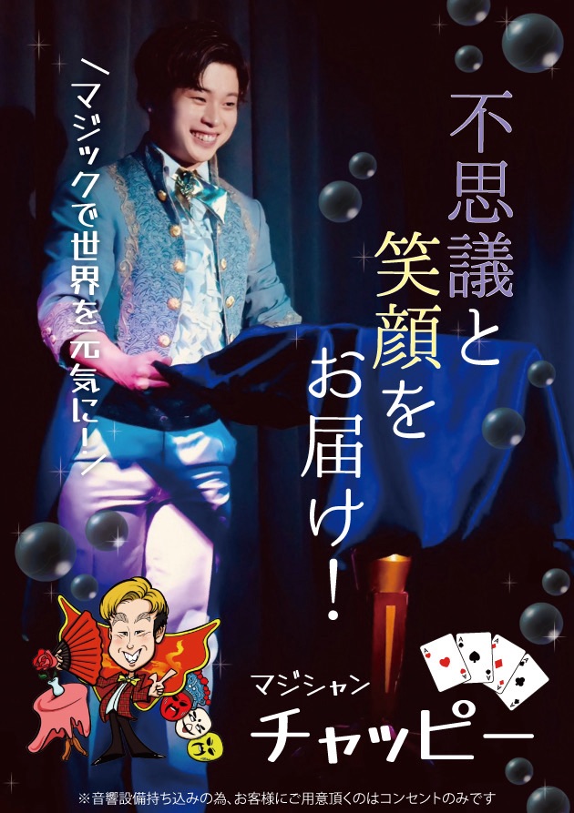皆様こんにちは!僕は日本全国の企業様パーティーや小学校、幼稚園、結婚式や様々な場所へ出張マジックショーをお届けしている出張マジシャンです!