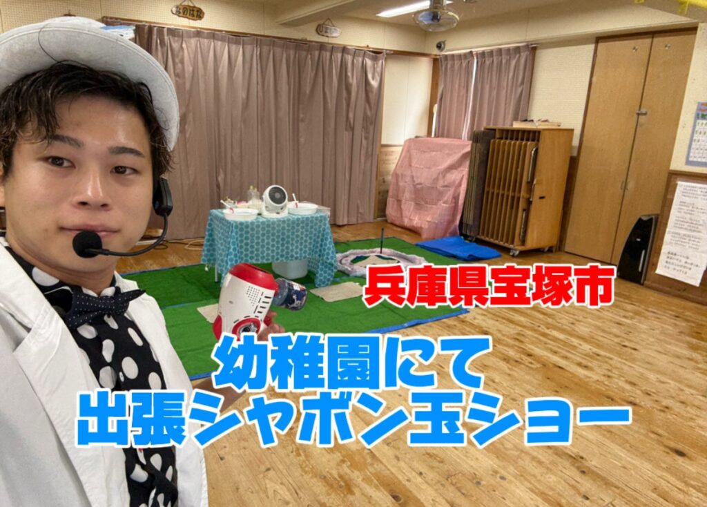 本日は、兵庫県宝塚市の幼稚へ出張シャボン玉ショーをお届けいたしました!