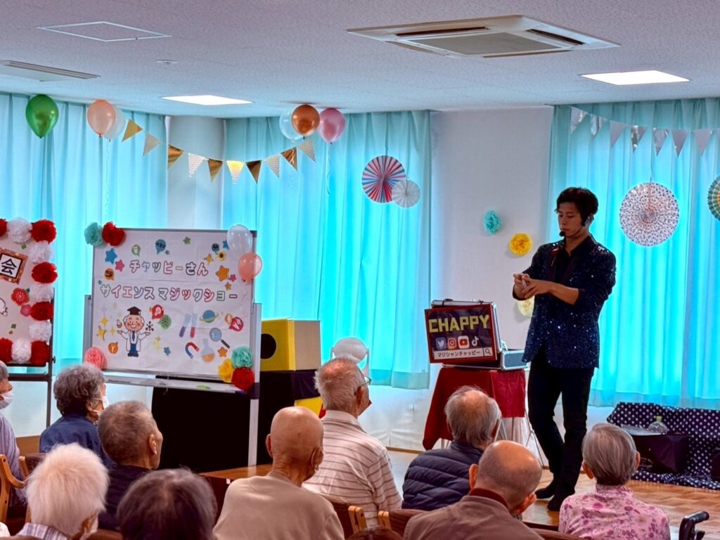 本日は介護施設へ出張サイエンスマジックショーをお届けいたしました!約1年前もマジックショーでお呼びいただき、リピートのご依頼でした!