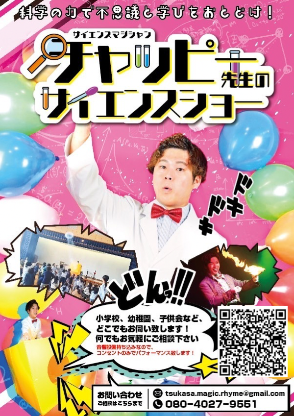 サイエンスパフォーマーをを依頼したい、マジシャンを呼びたいお客様は是非お問い合わせ下さい!