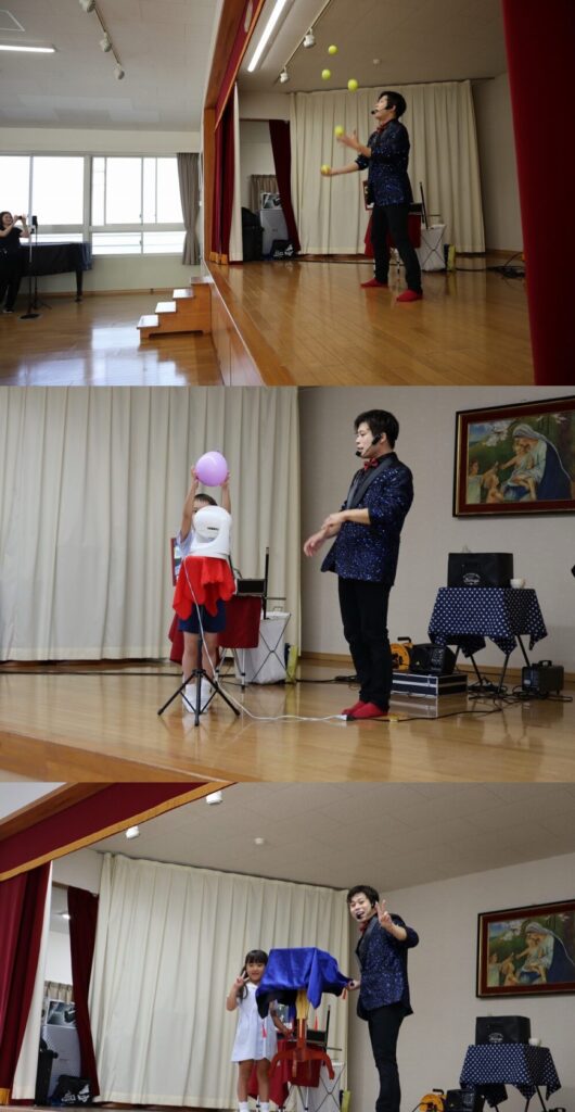 本日は、幼稚園、お楽しみ会へ出張マジック&サイエンスエンターテイメントショーをお届けいたしました!