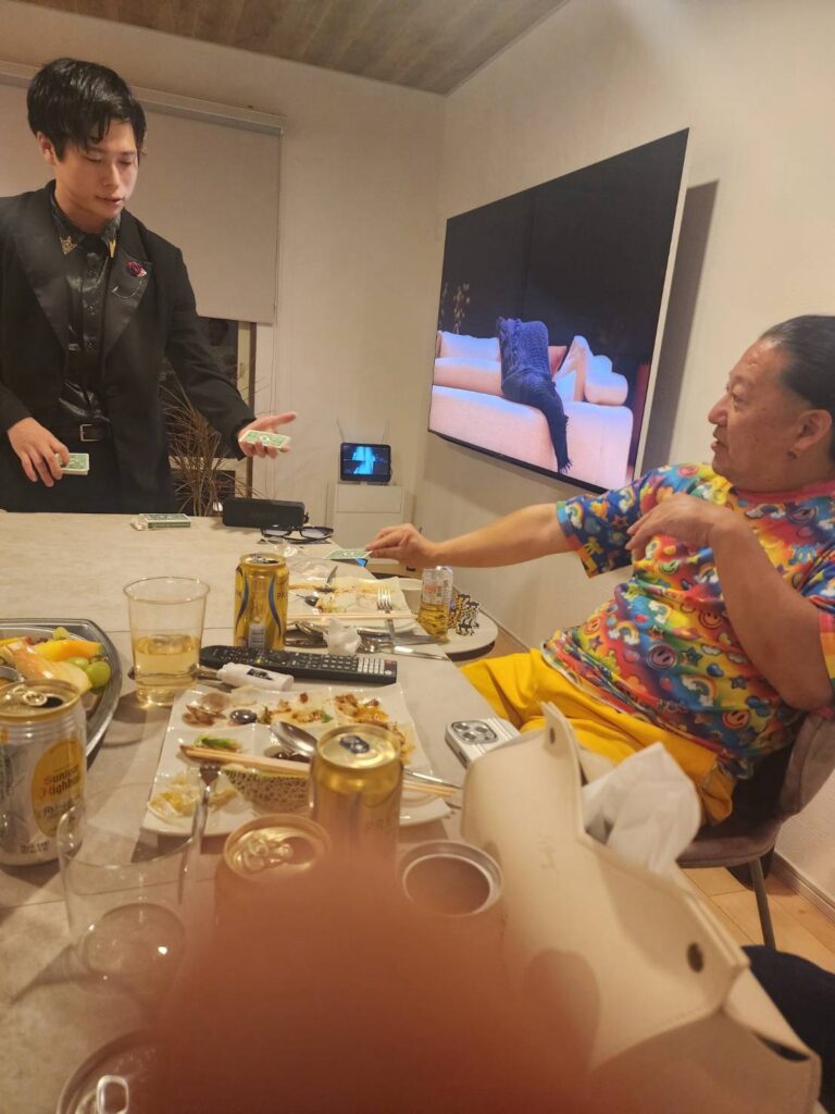 会社にお伺いさせていただくと、5名のお客様がいらっしゃり、皆様でお食事を楽しまれている中、マジックショーをしてほしいといったご依頼でした。素敵な会にお声掛けいただけましたことを本当に嬉しく思っています。