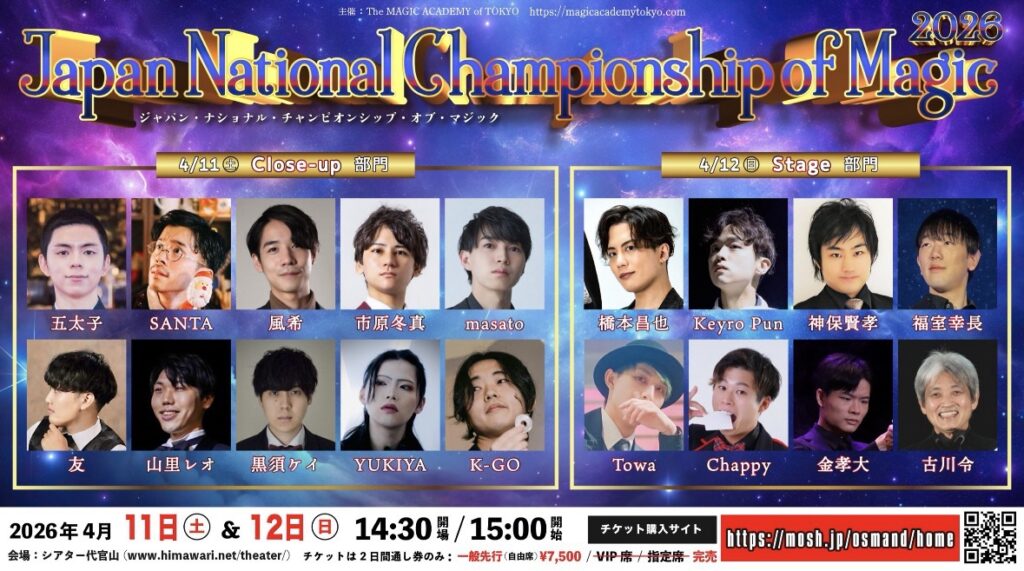 この度、Japan National Championship of Magic 2026(JNCM2026)の 本戦に出場することが決まりました!